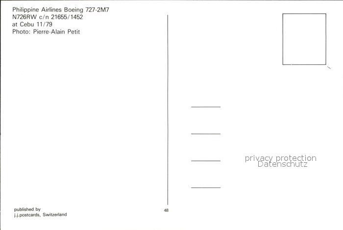 Flugzeuge Zivil Philippine Airlines Boeing 727-2M7 N726RW c/n 21655/1452 postalisch nicht gelaufen Erhaltung siehe scans