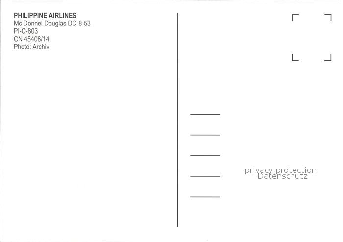 Flugzeuge Zivil Philippine Airlines McDonnell Douglas DC-8-53 PI-C-803 postalisch nicht gelaufen Erhaltung siehe scans