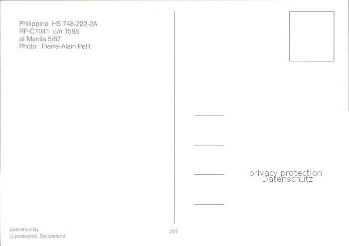Flugzeuge zivil Philippines HS 748-222-2A RP-C1041 c/n 1588 Manila postalisch nicht gelaufen Erhaltung siehe scans