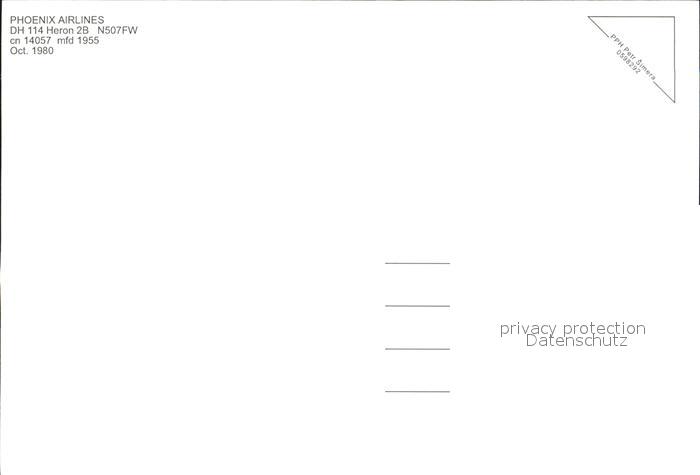 Flugzeuge Zivil Phoenix Airlines DH-114 Heron 2B N507FW cn 14057 postalisch nicht gelaufen Erhaltung siehe scans