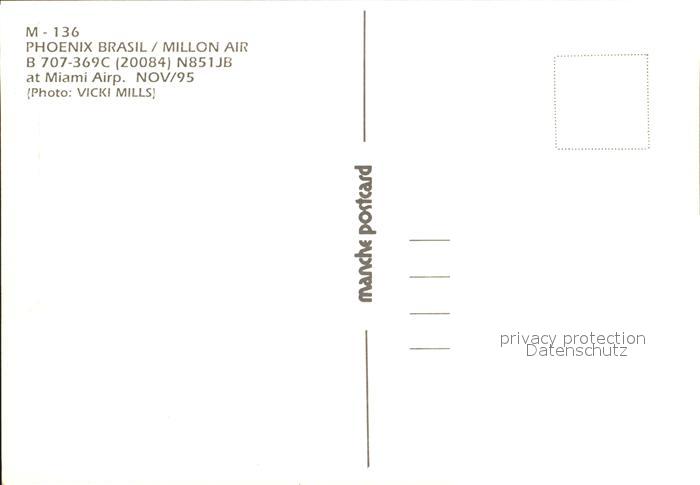 Flugzeuge Zivil Phoenix Millon Air B-707-369C 20084 N851JB postalisch nicht gelaufen Erhaltung siehe scans