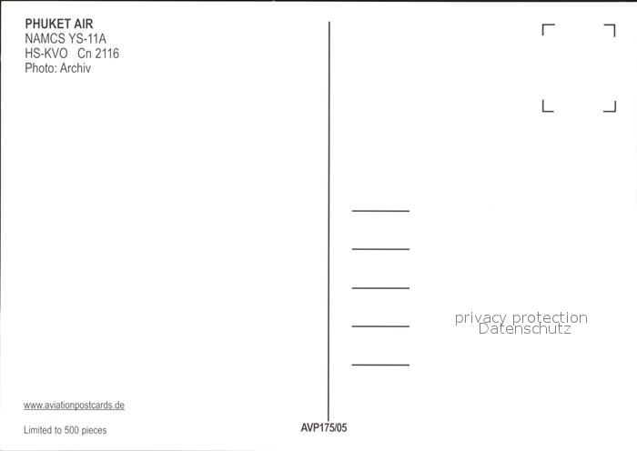 Flugzeuge Zivil Phuket Air NAMCS YS-11A HS-KVO Cn 2116 postalisch nicht gelaufen Erhaltung siehe scans