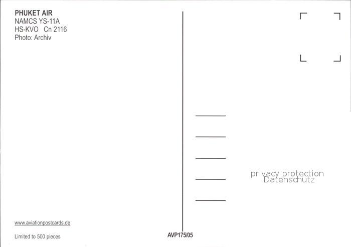 Flugzeuge Zivil Phuket Air NAMCS YS-11A HS-KVO Cn 2116 postalisch nicht gelaufen Erhaltung siehe scans
