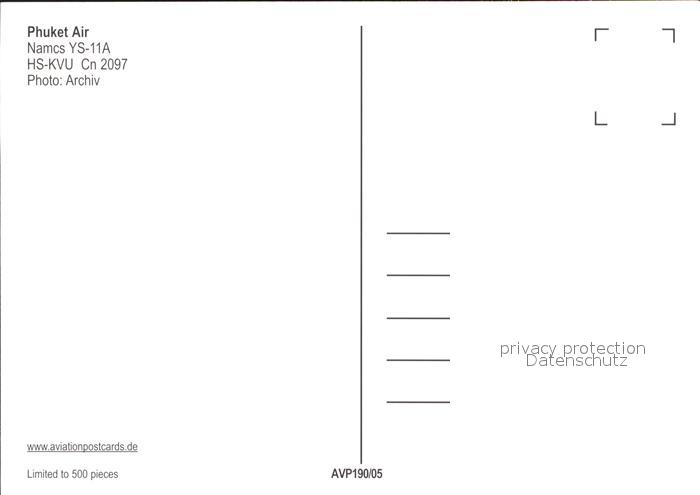 Flugzeuge Zivil Phuket Air Namcs YS-11A HS-KVU cn 2097 postalisch nicht gelaufen Erhaltung siehe scans