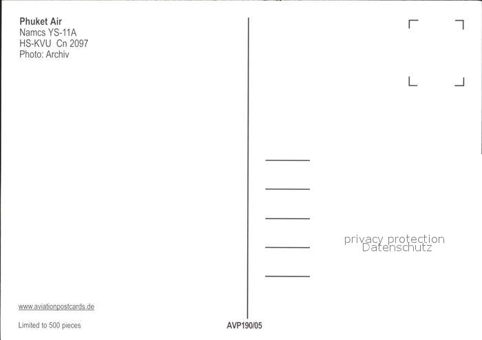 Flugzeuge Zivil Phuket Air Namcs YS-11A HS-KVU Cn 2097 postalisch nicht gelaufen Erhaltung siehe scans