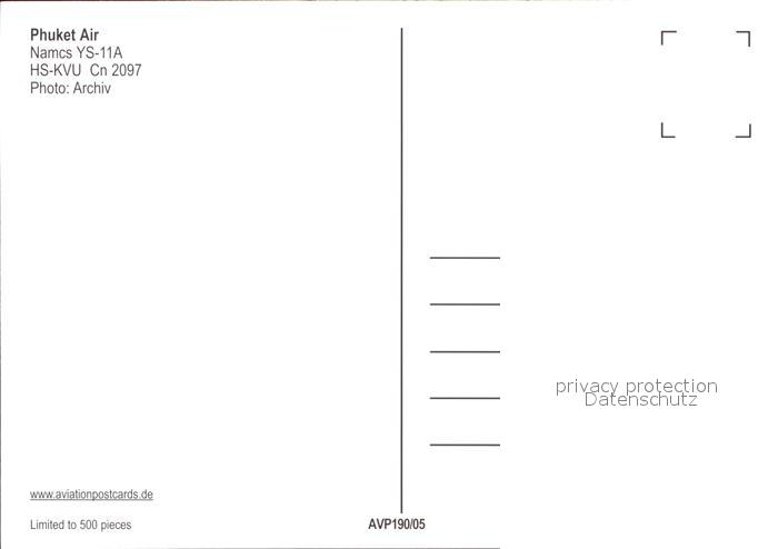 Flugzeuge Zivil Phuket Air Namcs YS-11A HS-KVU cn2097 postalisch nicht gelaufen Erhaltung siehe scans