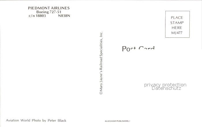 Flugzeuge Zivil Piedmont Airlines Boeing 727-51 c/n 18803 N838N postalisch nicht gelaufen Erhaltung siehe scans
