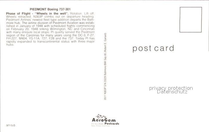 71809110 Flugzeuge Zivil Piedmont Boeing 737-301 N303P KatCode 22120000001300