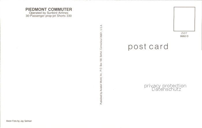 Flugzeuge Zivil Piedmont Commuter N332SB postalisch nicht gelaufen Erhaltung siehe scans