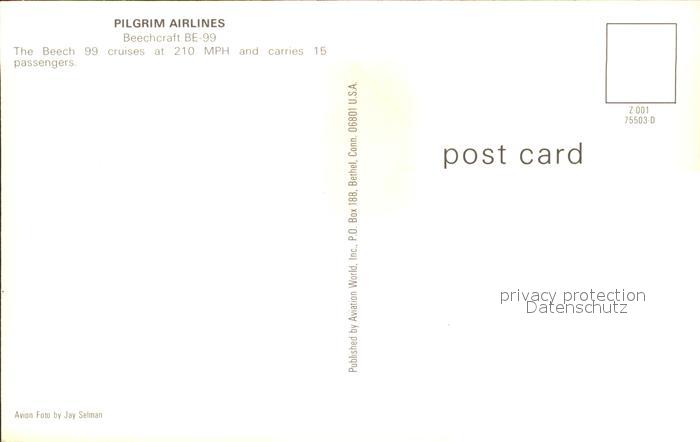 Flugzeuge Zivil Pilgrim Airlines Beechcraft BE-99 N134PM postalisch nicht gelaufen Erhaltung siehe scans