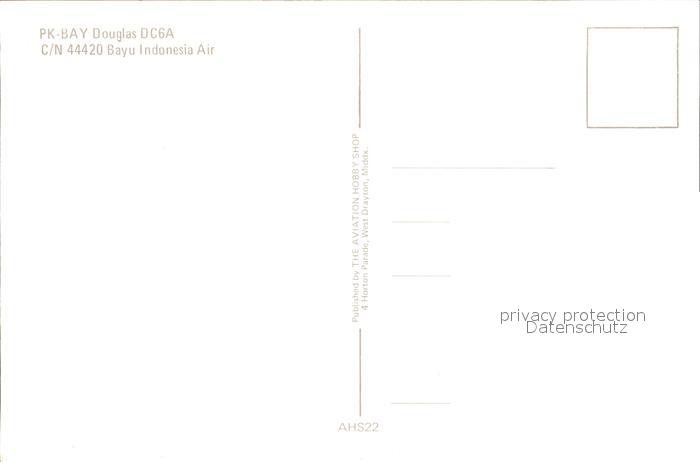 Flugzeuge Zivil PK-BAY Douglas DC 6A c/n 44420 Bayu Indonesia Air postalisch nicht gelaufen Erhaltung siehe scans