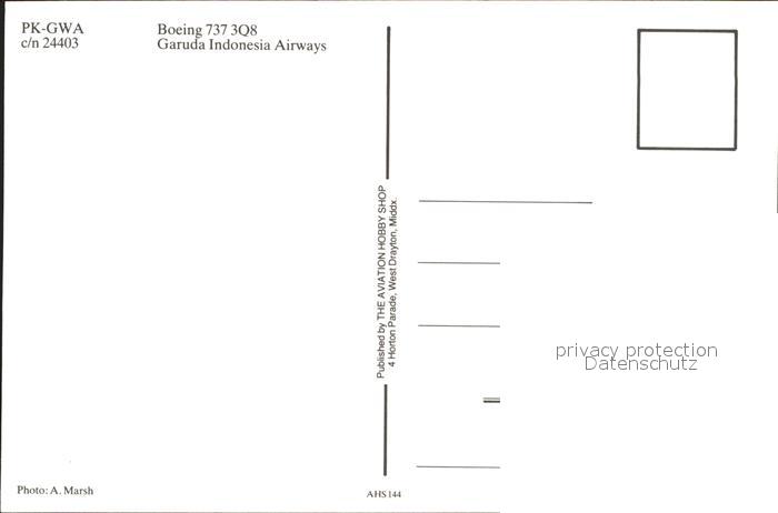 Flugzeuge Zivil PK-GWA Boeing 737 3Q8 c/n 24403 Garuda Indonesia Airways postalisch nicht gelaufen Erhaltung siehe scans
