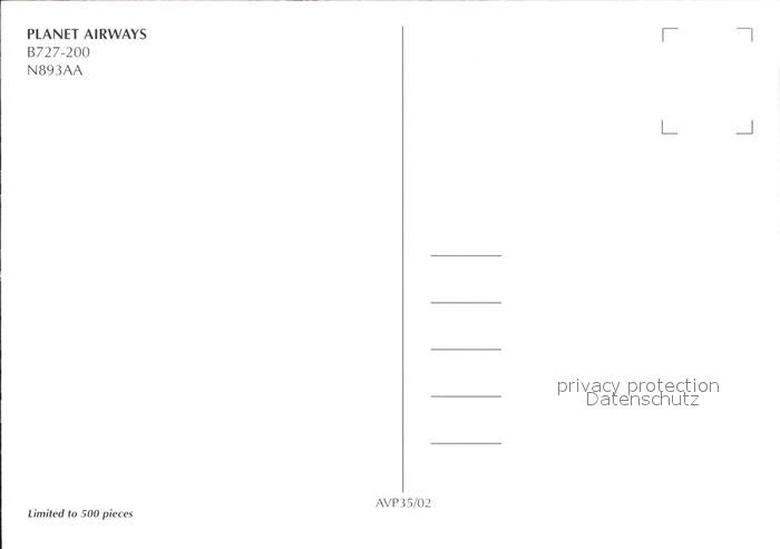 Flugzeuge Zivil Planet Airways B727-200 N893AA postalisch nicht gelaufen Erhaltung siehe scans