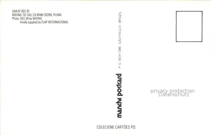 Flugzeuge Zivil Pluna Boeing 737-2A3 CX-BHM 20299 postalisch nicht gelaufen Erhaltung siehe scans