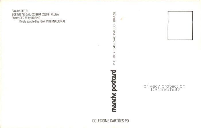 Flugzeuge Zivil Pluna Boeing 737-2A3 CX-BHM 20299 postalisch nicht gelaufen Erhaltung siehe scans