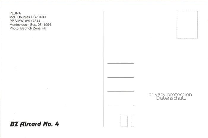 Flugzeuge Zivil PLUNA McD Douglas DC-10-30 PP-VMW c/n 47844 postalisch nicht gelaufen Erhaltung siehe scans