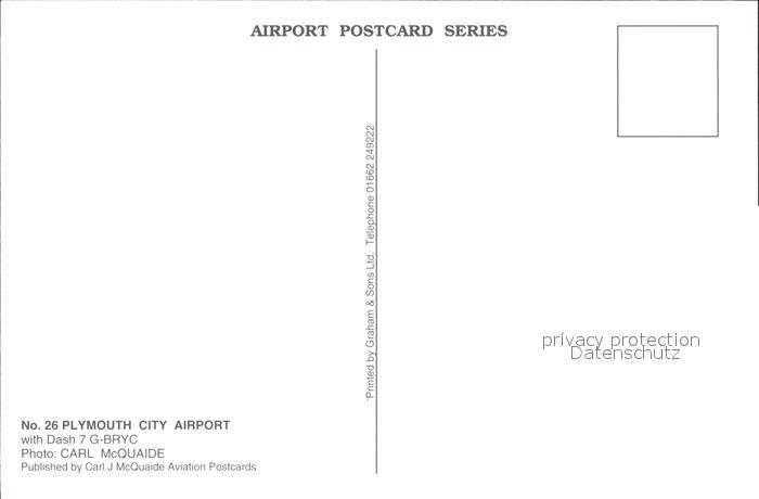 Flugzeuge zivil Plymouth City Airport Dash 7 G-BRYC postalisch nicht gelaufen Erhaltung siehe scans