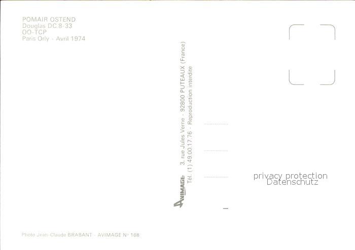Flugzeuge Zivil Pomair Ostend Douglas DC-8-33 OO-TCP postalisch nicht gelaufen