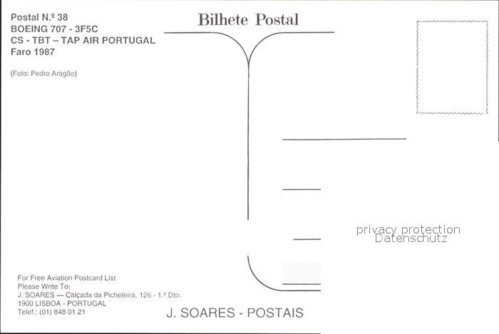 Flugzeuge zivil Postal Nr 38 Boeing 707-3F5C CS-TBT -TAP Air Portugal postalisch nicht gelaufen Erhaltung siehe scans