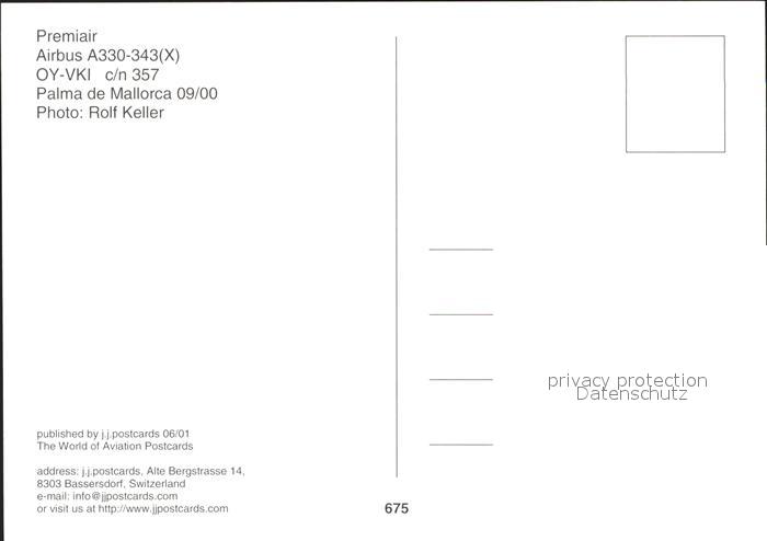 Flugzeuge Zivil Premiair A330-343X OY-VKI c/n 357 postalisch nicht gelaufen Erhaltung siehe scans