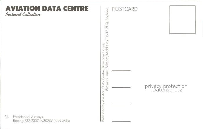 Flugzeuge Zivil Presidential Airways Boeing 737-230C N302XV postalisch nicht gelaufen Erhaltung siehe scans