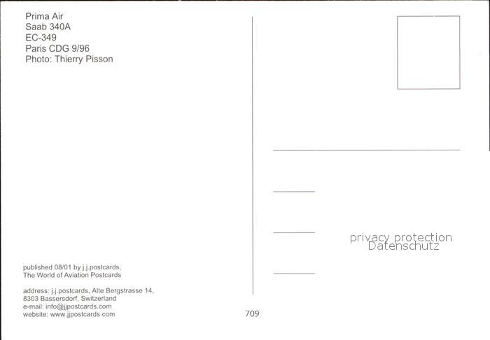 Flugzeuge Zivil Prima Air Saab 340A EC-349 postalisch nicht gelaufen Erhaltung siehe scans