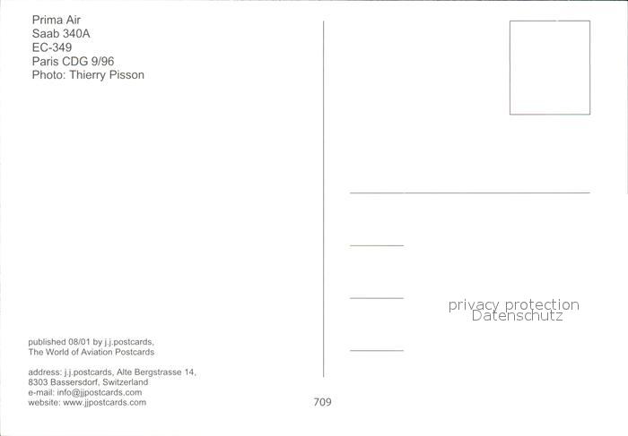 Flugzeuge Zivil Prima Air Saab 340A EC-349 postalisch nicht gelaufen Erhaltung siehe scans