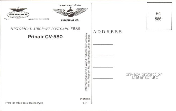 Flugzeuge Zivil Prinair CV-580 N589PL postalisch nicht gelaufen Erhaltung siehe scans