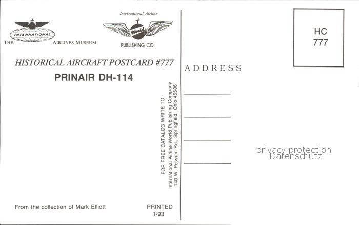 Flugzeuge Zivil Prinair DH-114 N578PR postalisch nicht gelaufen Erhaltung siehe scans