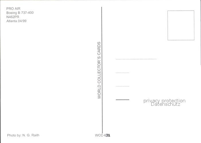 Flugzeuge Zivil Pro Air Boeing 737-400 N462PR postalisch nicht gelaufen Erhaltung siehe scans