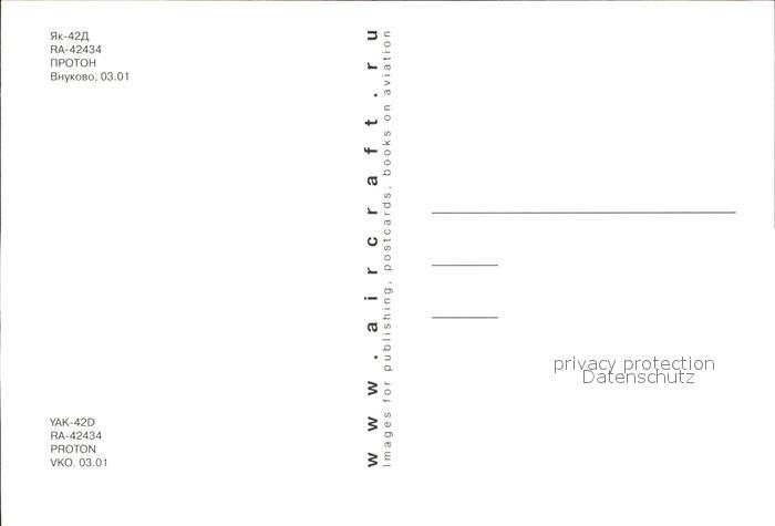 Flugzeuge Zivil Proton Yak-42D RA-42434 postalisch nicht gelaufen Erhaltung siehe scans