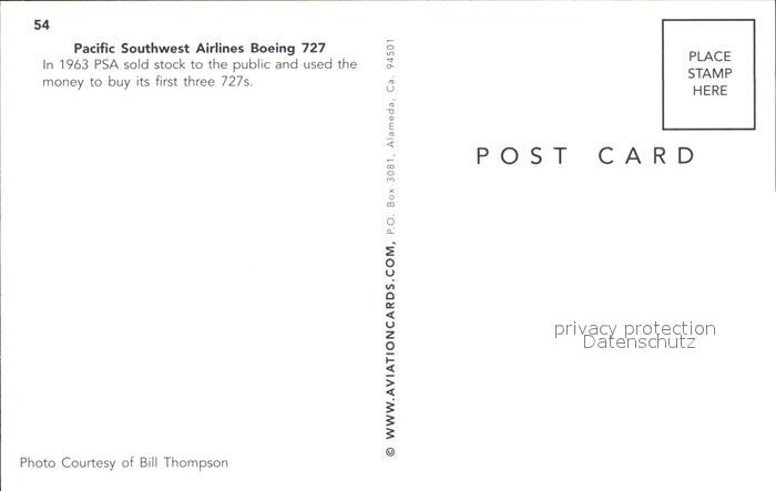 Flugzeuge Zivil PSA Pacific Southwest Airlines Boeing 727 postalisch nicht gelaufen Erhaltung siehe scans