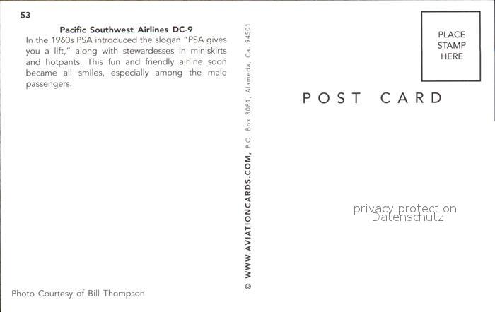 Flugzeuge Zivil PSA Pacific Southwest Airlines DC-9 postalisch nicht gelaufen Erhaltung siehe scans