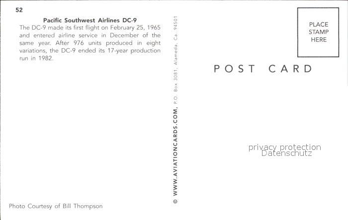 Flugzeuge Zivil PSA Pacific Southwest Airlines DC-9 postalisch nicht gelaufen Erhaltung siehe scans