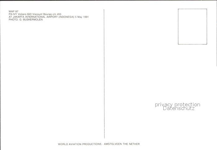 Flugzeuge Zivil PX-IVY Vickers 843 Viscount Bouraq c/n 455 postalisch nicht gelaufen Erhaltung siehe scans