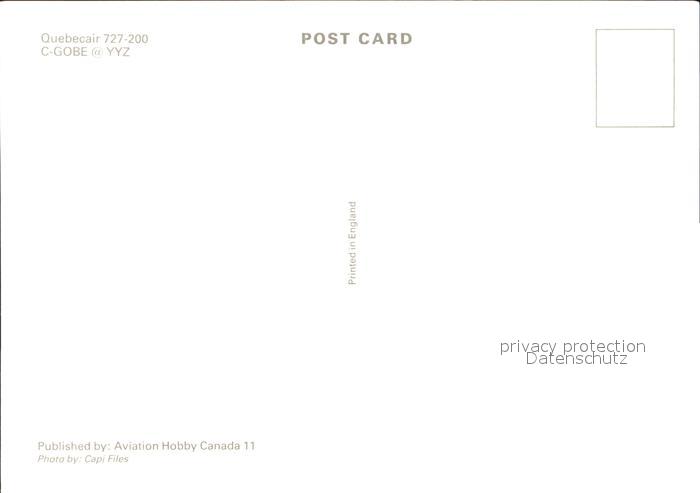 Flugzeuge Zivil Quebecair 727-200 C-GOBE postalisch nicht gelaufen Erhaltung siehe scans
