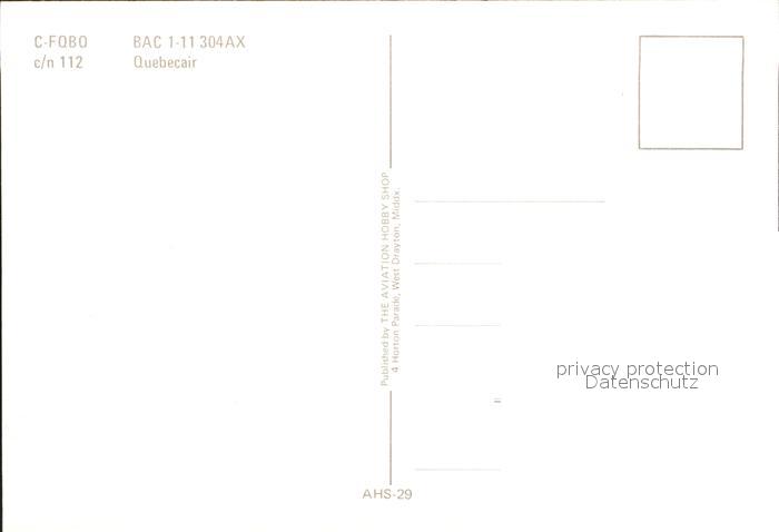 Flugzeuge Zivil Quebecair BAC 1-11 304AX C-FQBO c/n 112 postalisch nicht gelaufen Erhaltung siehe scans