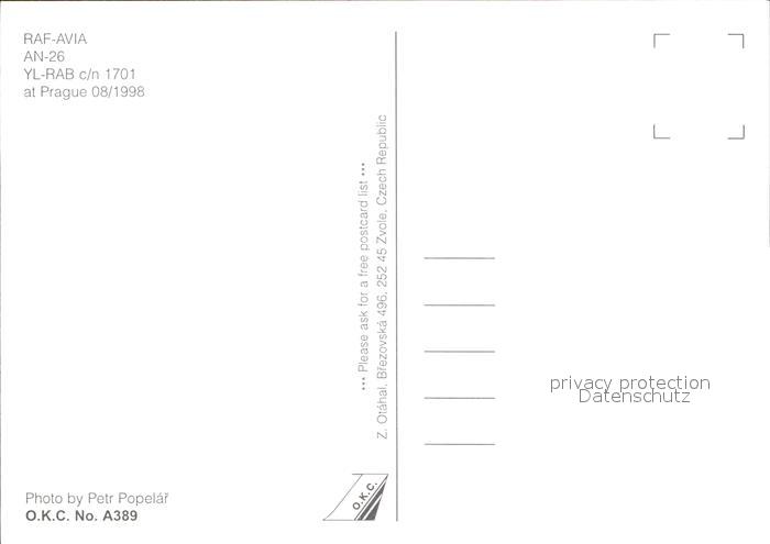 Flugzeuge Zivil RAF-AVIA AN-26 YL-RAB c/n 1701 postalisch nicht gelaufen Erhaltung siehe scans