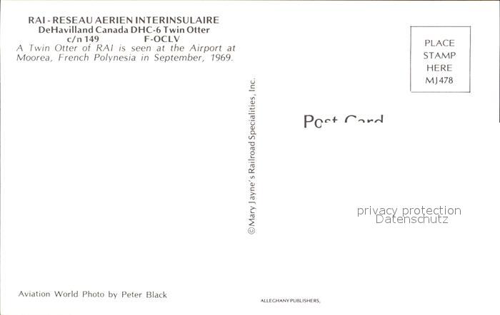 Flugzeuge Zivil RAI De Havilland Canada DHC-6 Twin Otter c/n 149 F-OCLV postalisch nicht gelaufen Erhaltung siehe scans