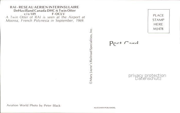 Flugzeuge Zivil RAI Reseau Aerien Interinsulaire DeHavilland Canada DHC-6 Twin Otter F-OCLV c/n 149 postalisch nicht gelaufen Erhaltung siehe scans