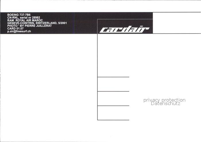 Flugzeuge Zivil RAM Royal Air Maroc Boeing 737-7B6 CN-RNL postalisch nicht gelaufen Erhaltung siehe scans