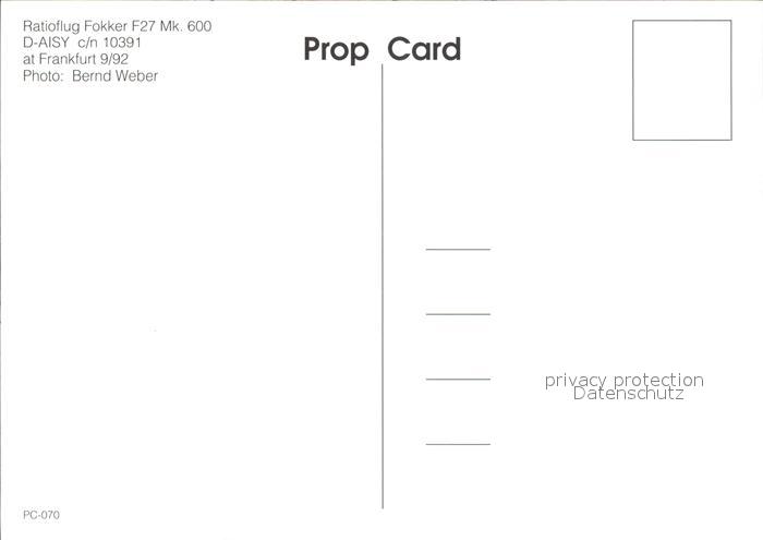 Flugzeuge Zivil Ratioflug Fokker F27 Mk.600 D-AISY c/n 10391 postalisch nicht gelaufen Erhaltung siehe scans