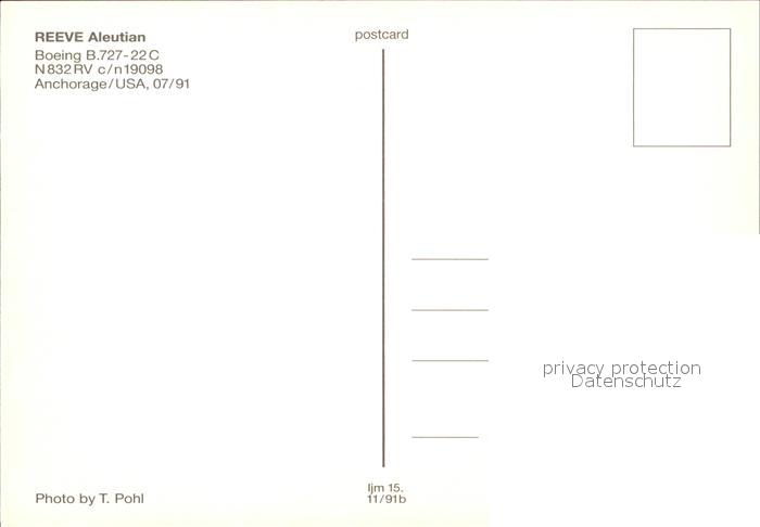 Flugzeuge Zivil Reeve Aleutian Boeing B727-22C N832RV c/n 19098 postalisch nicht gelaufen Erhaltung siehe scans