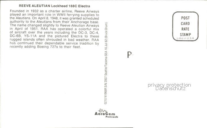 Flugzeuge Zivil Reeve Aleutian Lockheed 188C Electra postalisch nicht gelaufen Erhaltung siehe scans