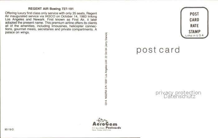 Flugzeuge Zivil Regent Air Boeing 727-191 postalisch nicht gelaufen Erhaltung siehe scans