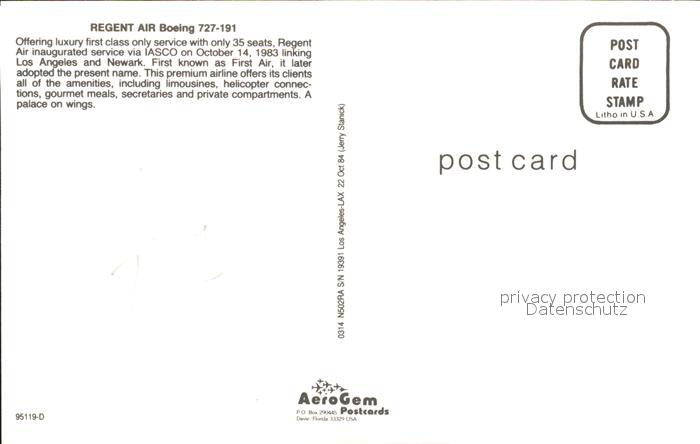 Flugzeuge Zivil Regent Air Boeing 727-191 N502RA s/n 19391 postalisch nicht gelaufen Erhaltung siehe scans