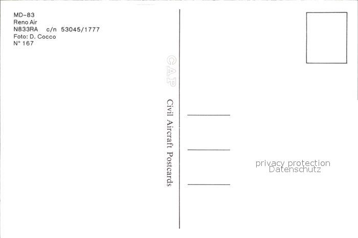 Flugzeuge Zivil Reno Air MD-83 N833RA c/n 53045/1777 postalisch nicht gelaufen Erhaltung siehe scans