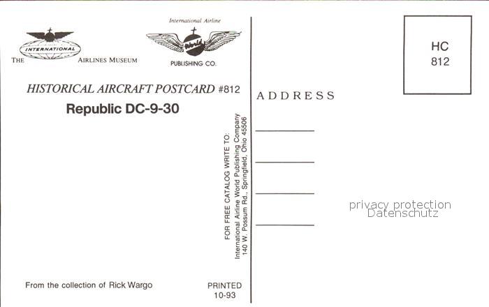 Flugzeuge Zivil Republic DC-9-30 N9342 postalisch nicht gelaufen Erhaltung siehe scans