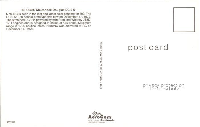 Flugzeuge Zivil Republic McDonnell Douglas DC-9-51 postalisch nicht gelaufen Erhaltung siehe scans