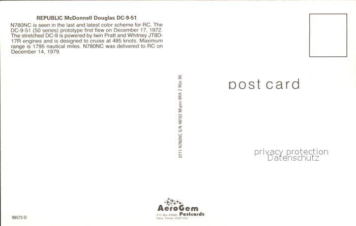 Flugzeuge Zivil Republic McDonnell Douglas DC-9-51 N780NC postalisch nicht gelaufen